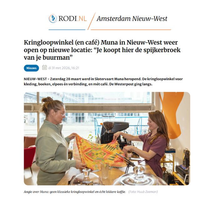 Kringloopwinkel Muna heropent woensdag in Nieuw-West
